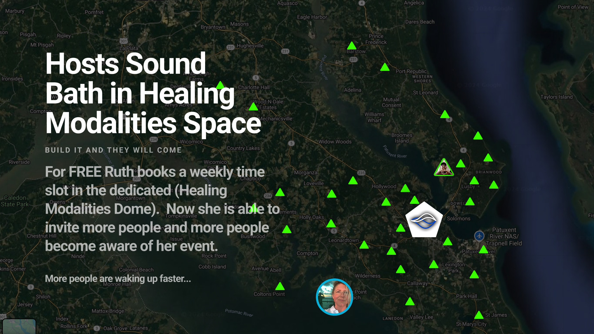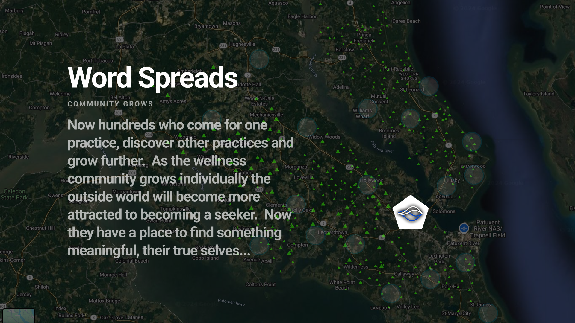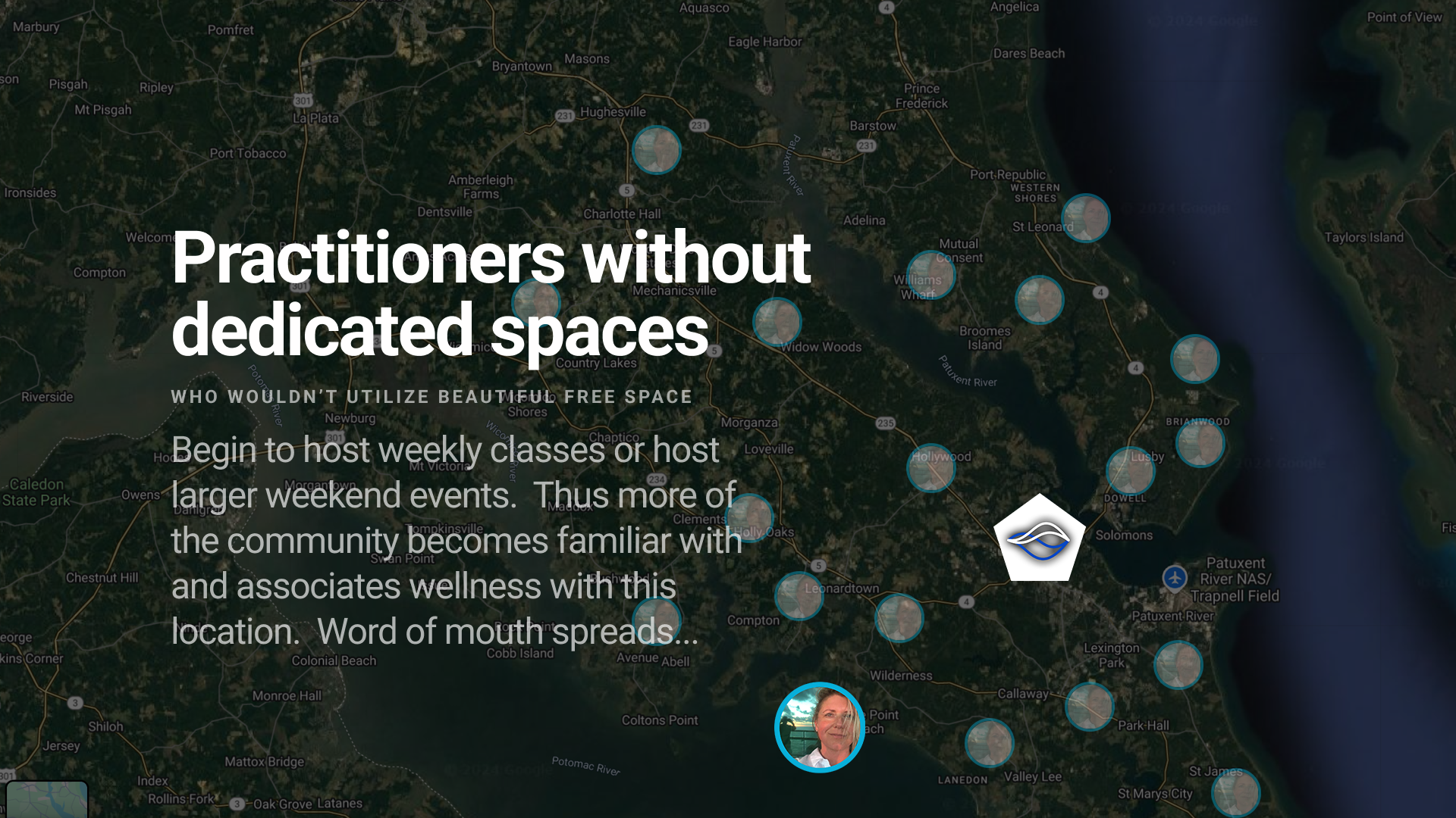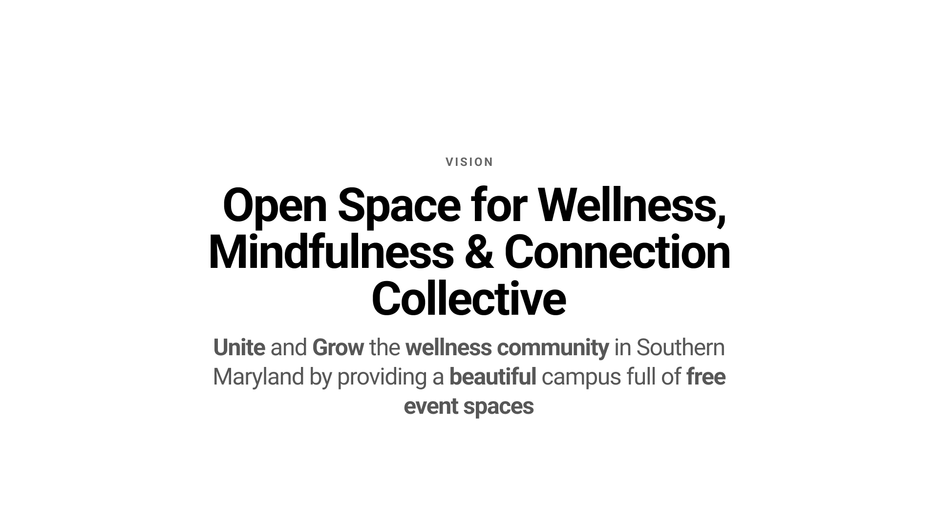 Unite and Grow the wellness community in Southern Maryland by providing a beautiful campus full of free to use event spaces for local practitioners and seekers come together at scale.