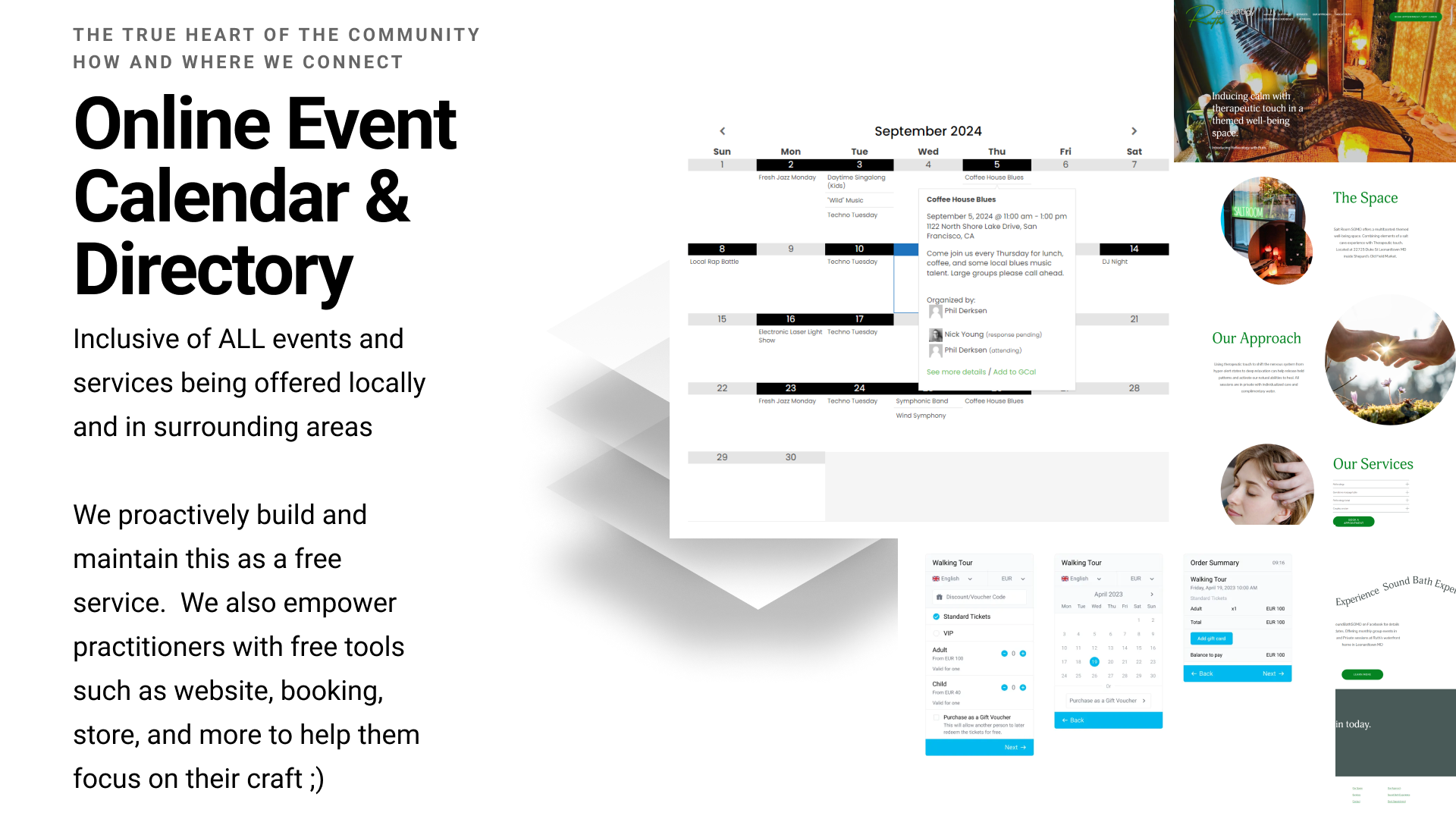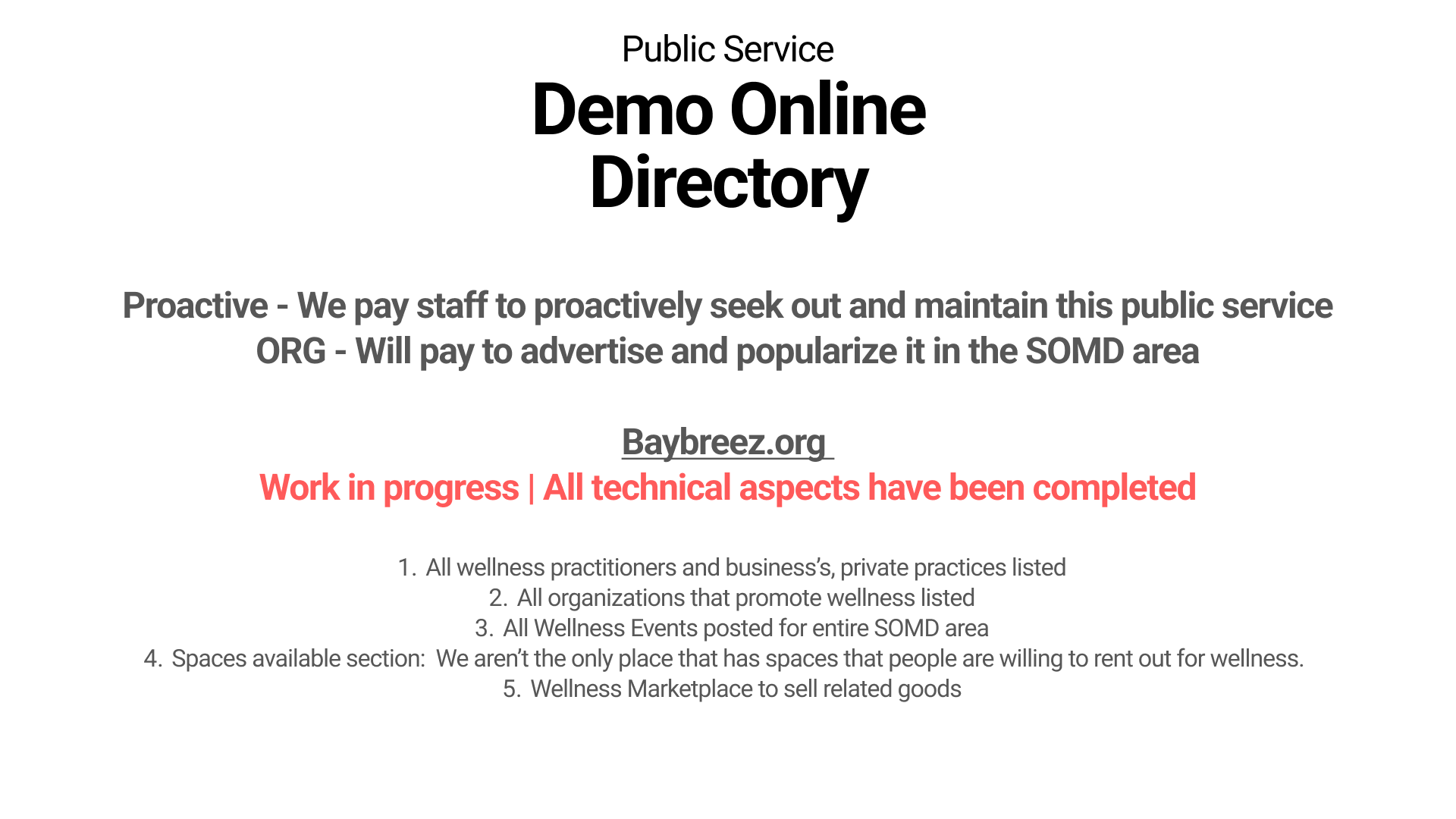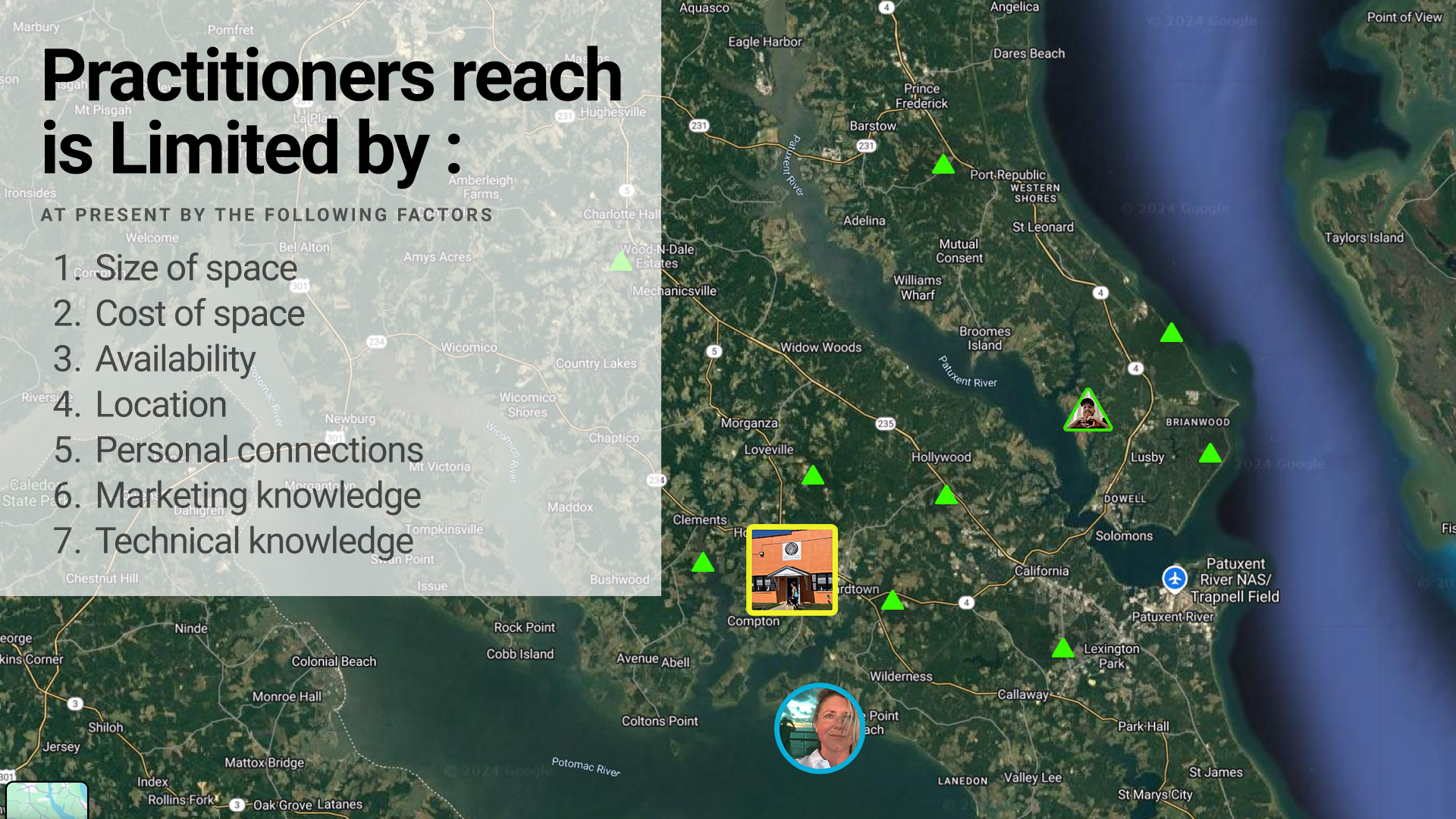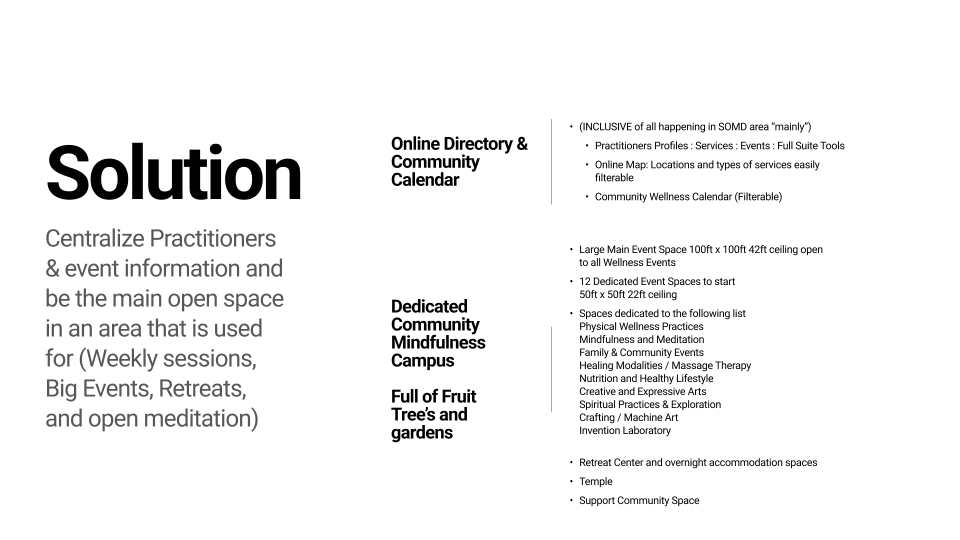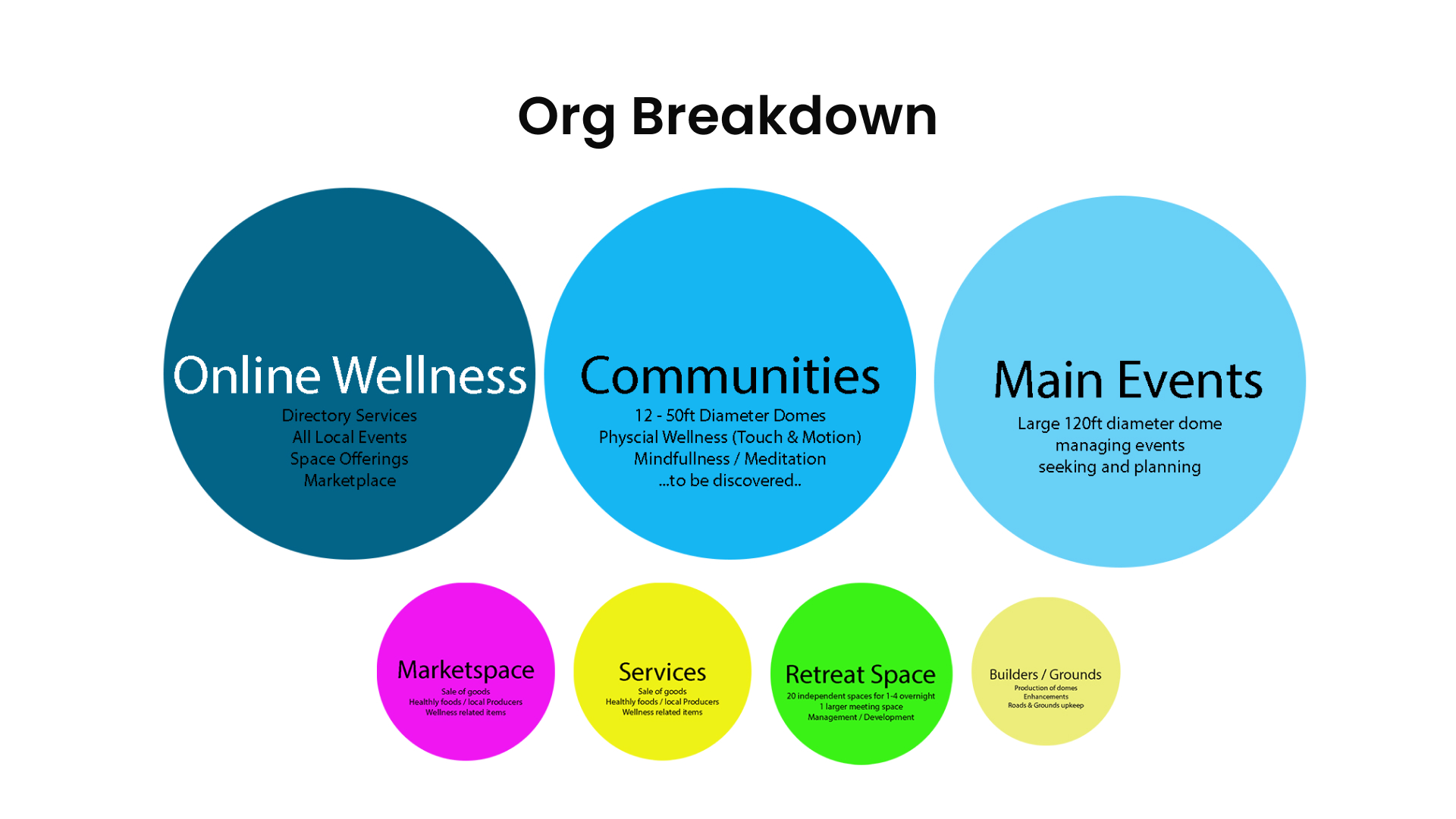 Unite and Grow the wellness community in Southern Maryland by providing a beautiful campus full of free to use event spaces for local practitioners and seekers come together at scale.